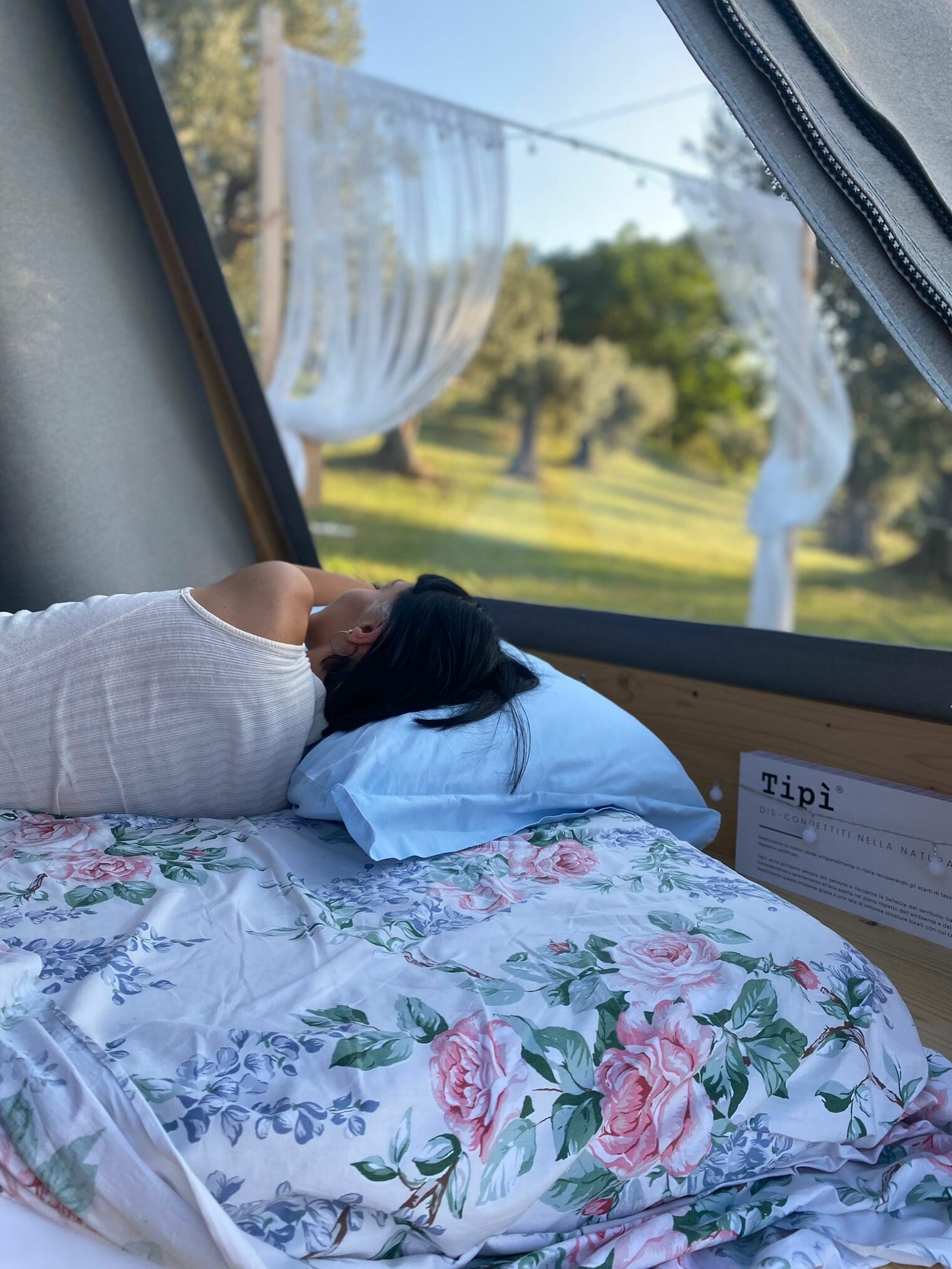 Da quest’anno facciamo parte della rete di strutture che permettono di provare l’esperienza di dormire in una tenda ecologica, riprendendo la forma delle tende dei nativi americani e combinandola con materiali estremamente innovativi e attenti alla sostenibilità. Infatti il tessuto è realizzato con scarti tessili.